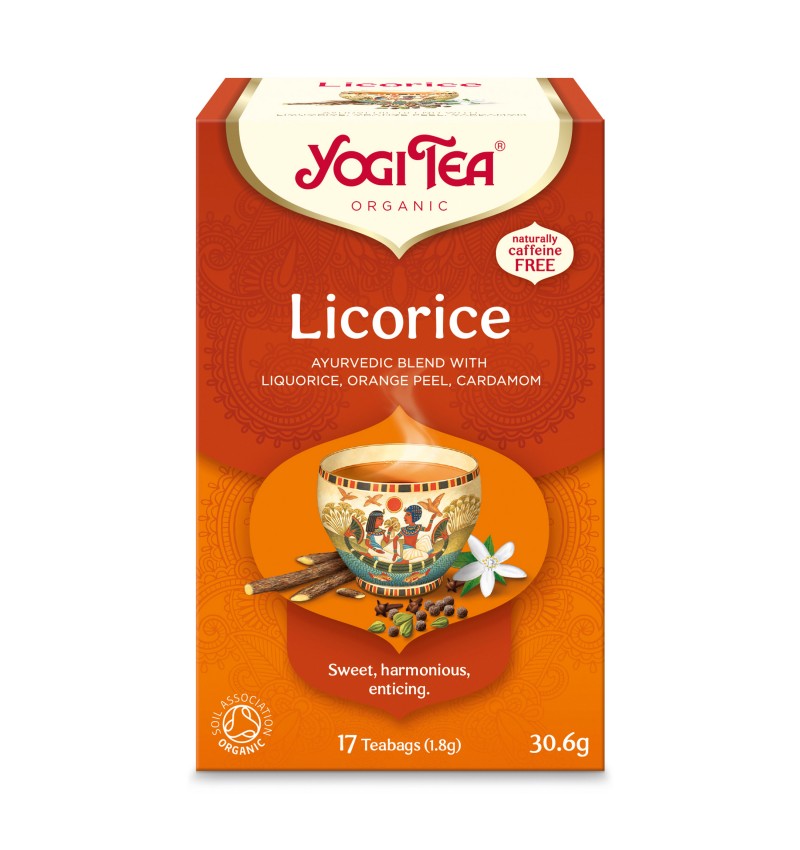 Ceaiul de la Yogi Tea este amestec din lemn dulce, scorţişoară, ghimbir, coajă de portocală şi ingrediente. Rădăcina de lemn dulce a fost apreciat de secole de numeroase culturi antice pentru aroma sa naturală. Lemnul dulce a fost atât de apreciat de vechii egipteni, încât s-a descoperit că au aşezat pacheţele cu lemn dulce în mormântul lui Tutankamon, pentru a fi folosite în viaţa de dincolo.