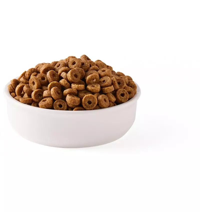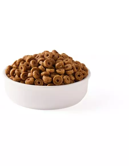 Ingrediente: Pui uscat* (20,5%), grâu*, porumb*, proteine din orez*, soia*, grăsime de pui*, mazăre galbenă*, mazăre verde*, coji de semințe de floarea soarelui*, drojdie de bere, coji de soia*, minerale, ulei de pește MSC¹ .