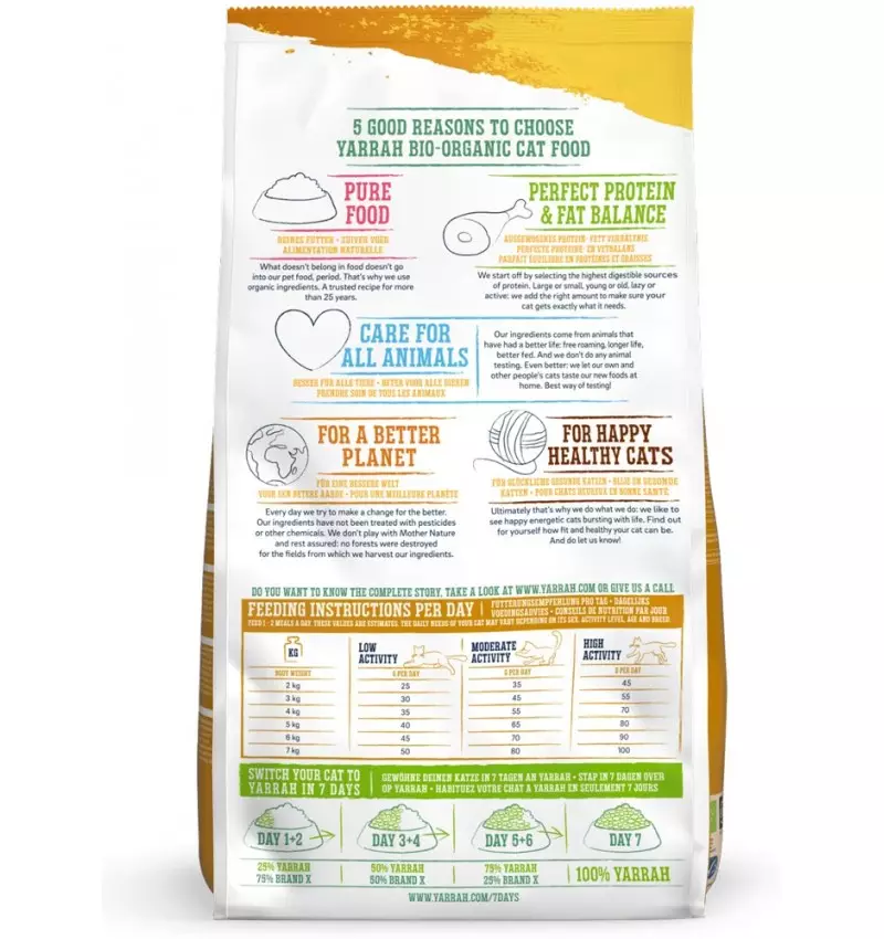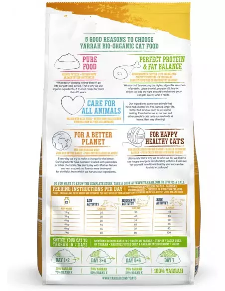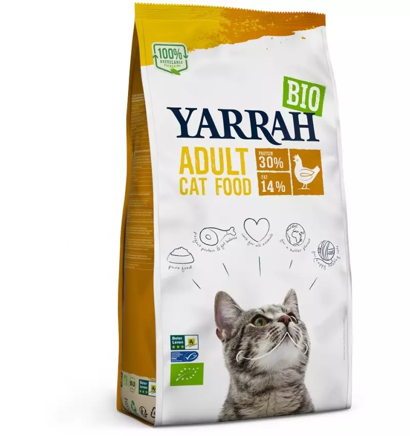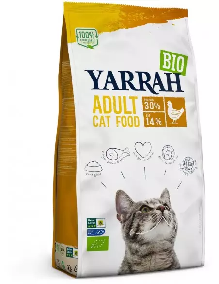 Hrana uscata bio pentru pisici adult, cu carne de pui, 30% proteina si 14% grasimi, 800g Yarrah