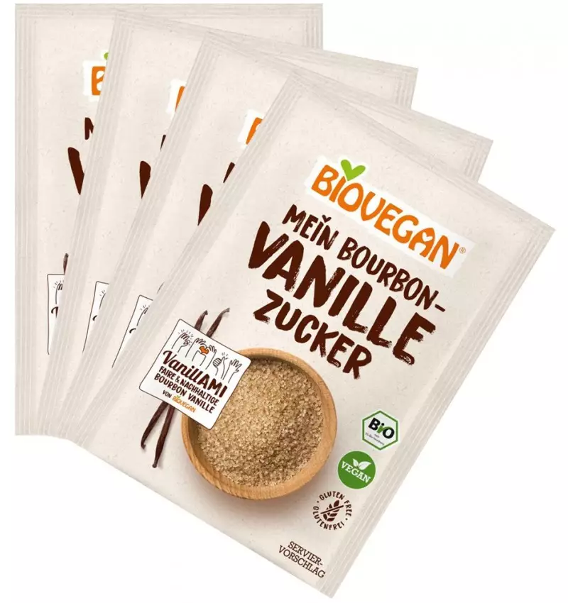 Cu vanilie de Bourbon pură și fără aromatizanți, zahărul vanilat Biovegan este ideal pentru dulciuri, creme, băuturi, prăjituri și fursecuri.
